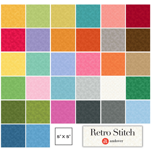 Charm Pack 5x5 Squares - Andover Retro Stitch - 40 5" Squares
