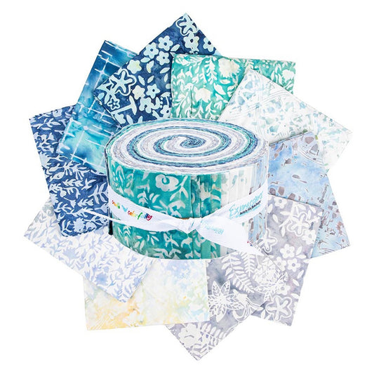 Riley Blake Seafoam Splash Floral Grid Expressions Batiks - 40 Strip Rolie Polie