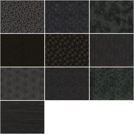 Basic Colors - Black Half-yard Bundle - 10 Fabrics, 5 Total Yards