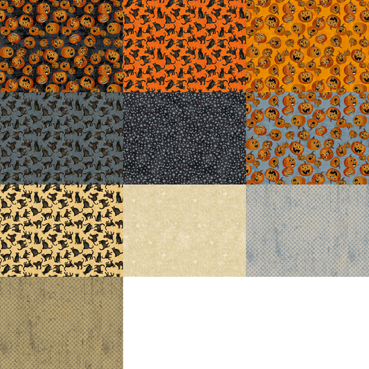 Clothworks "All Hallow's Eve" (Halloween) Half-yard Bundle - 10 Fabrics, 5 Total Yards