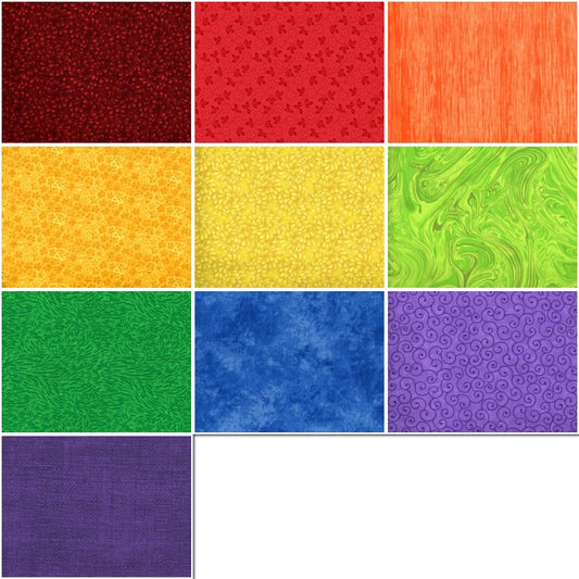 Bright Rainbow Half-yard Bundle - 10 Fabrics, 5 Total Yards