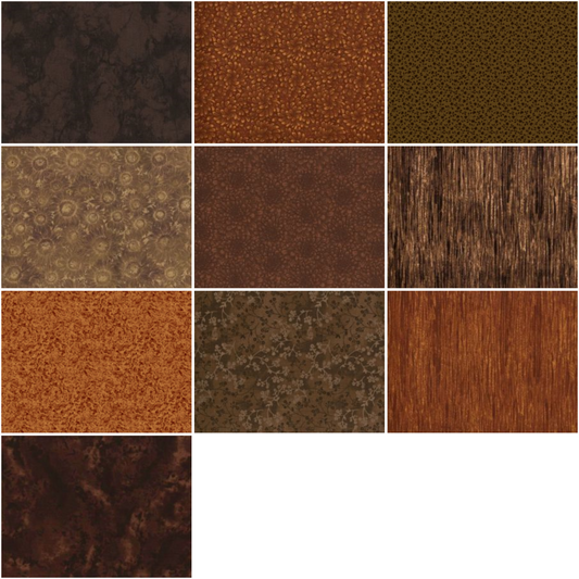 Basic Colors - Chocolate Half-yard Bundle - 10 Fabrics, 5 Total Yards