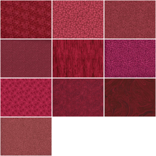 Basic Colors - Burgundy/Cranberry Half-yard Bundle - 10 Fabrics, 5 Total Yards