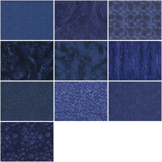 Basic Colors - Dark Blue Half-yard Bundle - 10 Fabrics, 5 Total Yards