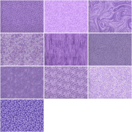 Basic Colors - Lavender Half-yard Bundle - 10 Fabrics, 5 Total Yards
