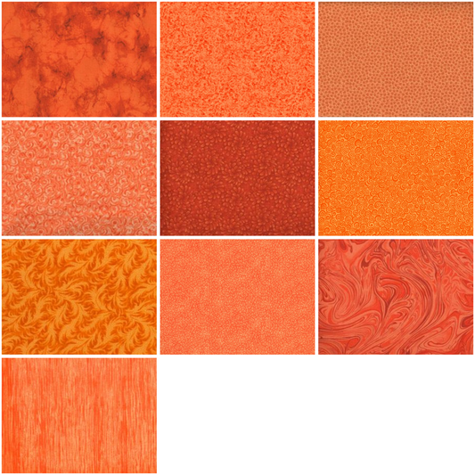 Basic Colors - Orange Half-yard Bundle - 10 Fabrics, 5 Total Yards