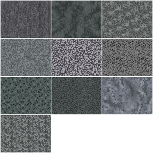 Basic Colors - Steel Half-yard Bundle - 10 Fabrics, 5 Total Yards