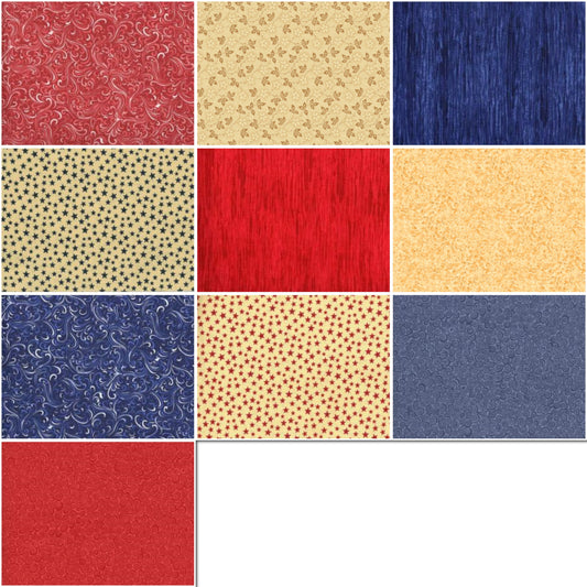Vintage Patriotic Palette Half-yard Bundle - 10 Fabrics, 5 Total Yards