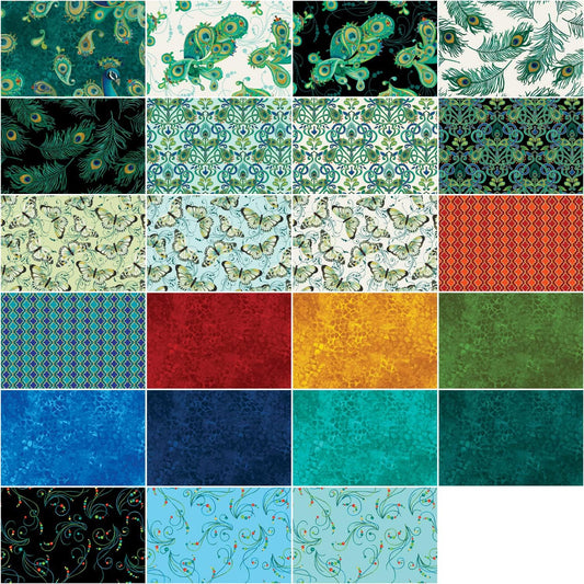 Benartex Peacock Symphony Strip-pies - 40 2.5" Strips