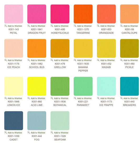 Charm Pack 5x5 Squares - Robert Kaufman Kona Solid Summer Days Colorway - 40 5" Squares