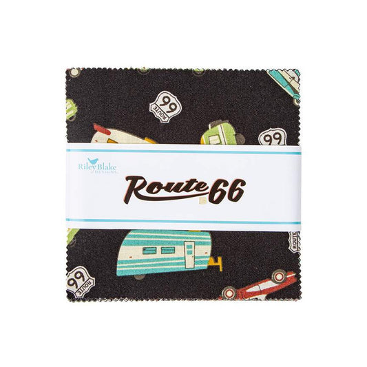 Charm Pack 5x5 Squares - Riley Blake Route 66 5-inch Stacker - 40 5" Squares
