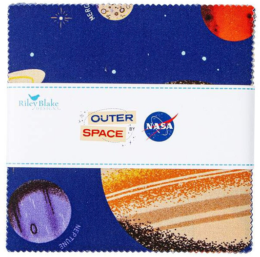 Charm Pack 5x5 Squares - Riley Blake Outer Space by NASA 5-inch Stacker - 40 5" Squares