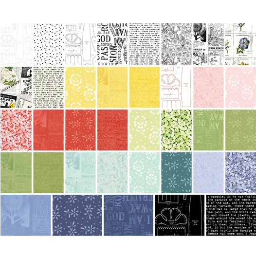 Charm Pack 5x5 Squares - Riley Blake Sewing Seeds III 5-inch Stacker - 40 5" Squares