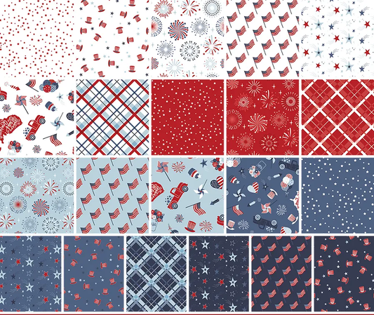 Charm Pack 5x5 Squares - Riley Blake Stars & Stripes Forever 5-inch Stacker - 40 5" Squares