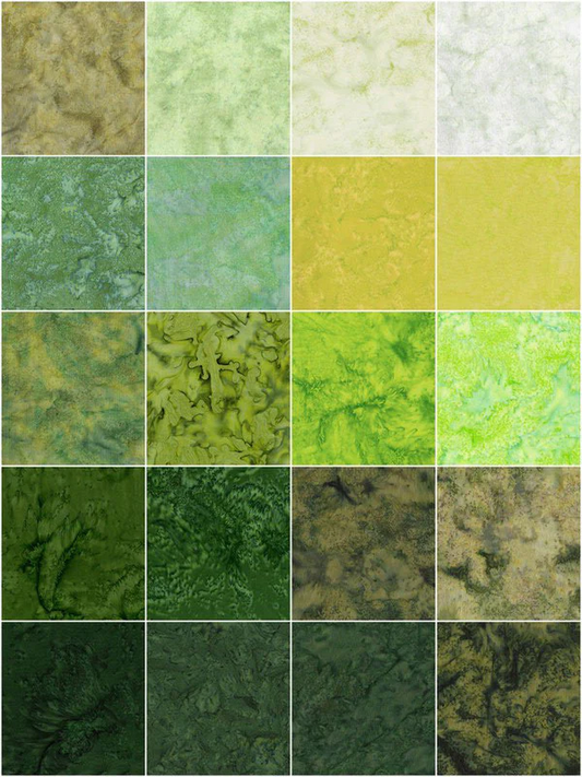 Island Batik - Glorious Green - 20 Fabrics, 40 Total Strips