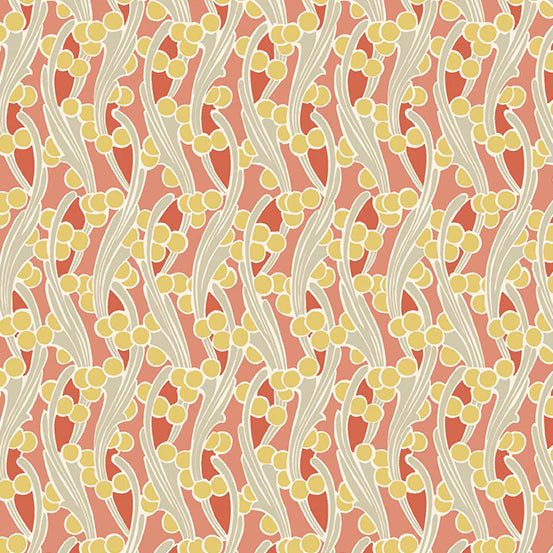(5 yd) Andover/Makower UK Fleur Nouveau 704-O Seaweed Orange