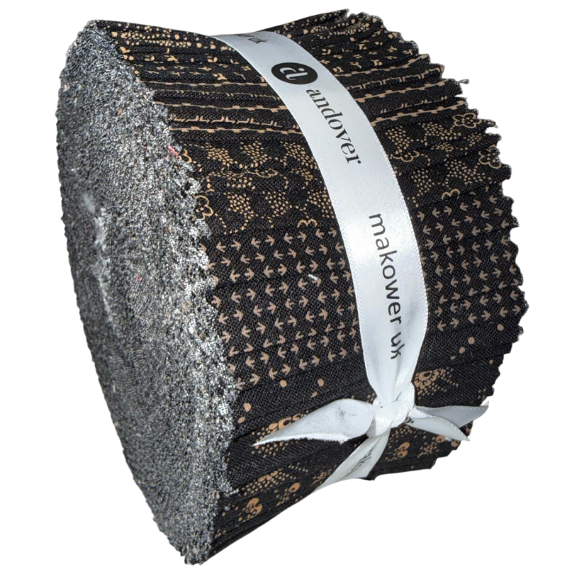 Roll contains 40 2.5" x WOF strips. Some prints may be repeated. Andover/Makower UK - Espresso collection.