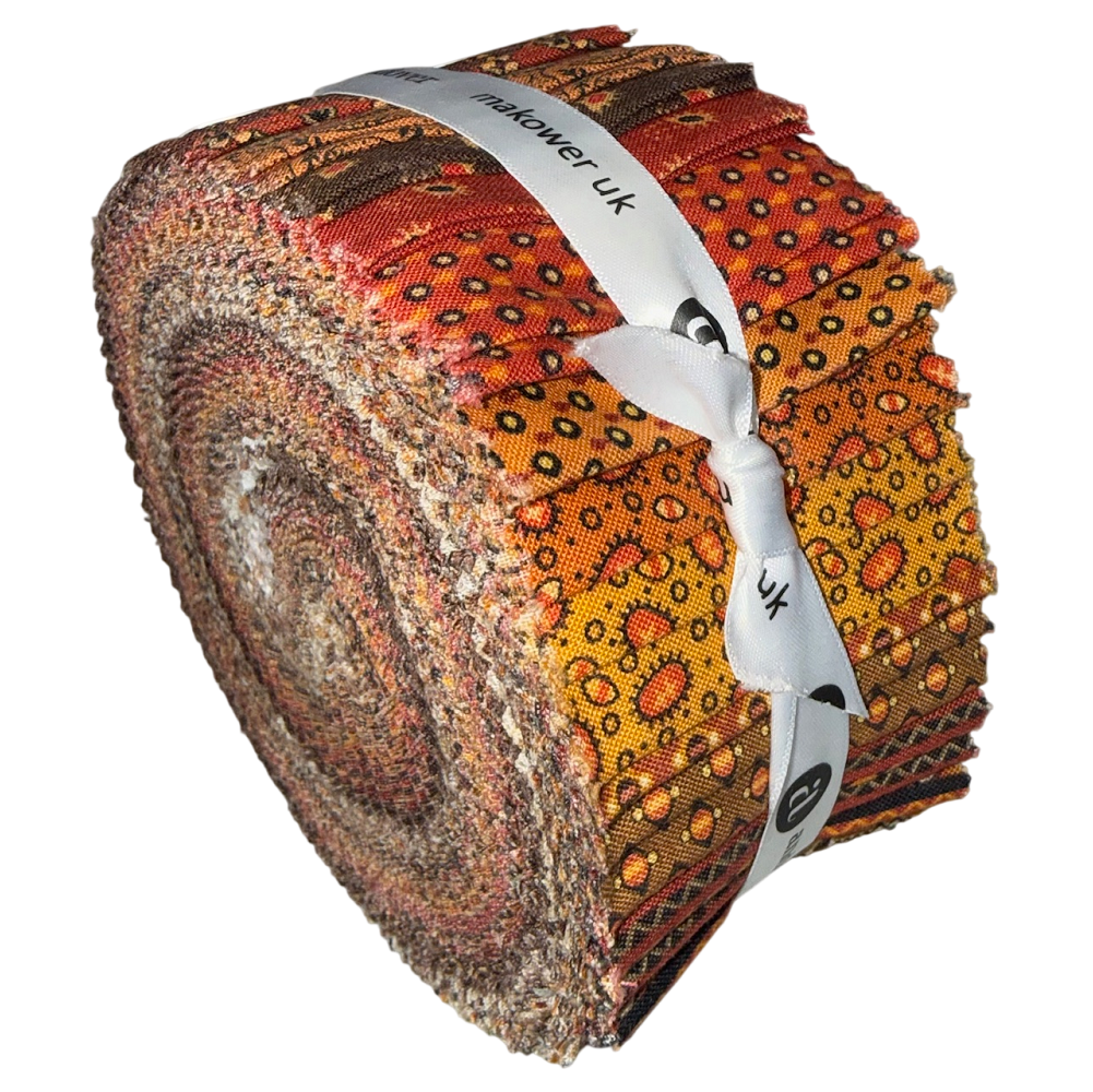Roll contains 40 2.5" x WOF strips. Some prints may be repeated. Andover/Makower UK - Spice Market collection.