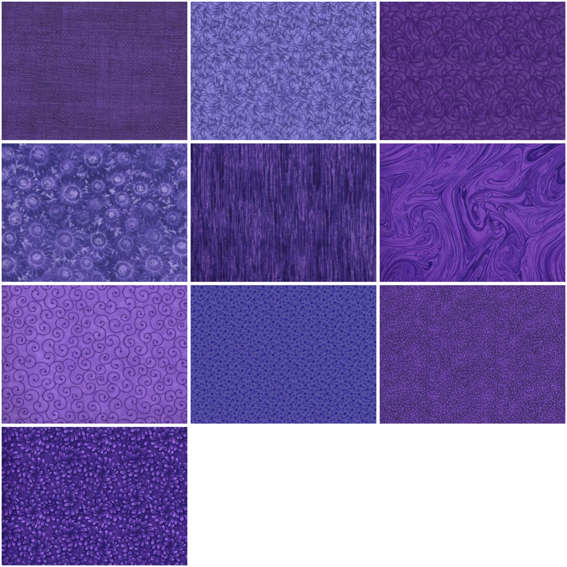 Basic Colors - Purple Half-yard Bundle - 10 Fabrics, 5 Total Yards