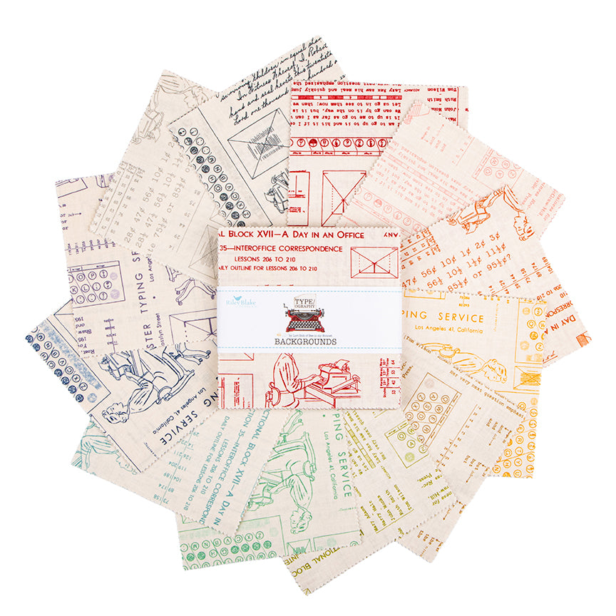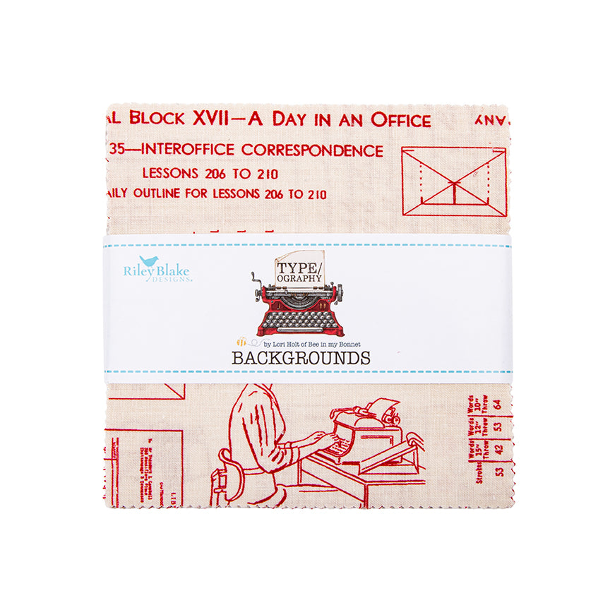 Charm Pack 5x5 Squares - Riley Blake TYPE/ography B (Neutrals) 5-inch Stacker - 40 5" Squares